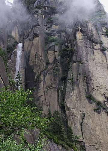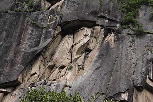 在瀑布流水中間隱約見天然形成的佛像。