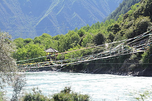 下午約2時許到達中流砥柱,中流砥柱位於川藏公路的尼洋河中游,因山高河水湍急,形成第一大峽谷。石柱是怎樣形成而坐落在河中?現在亦無人知曉!據相傳說,這塊巨石是工布地區的守護神,真是信不信由你?