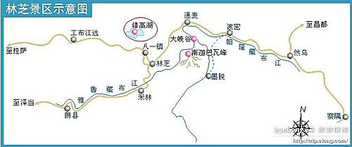 康定的木格措景區之地圖