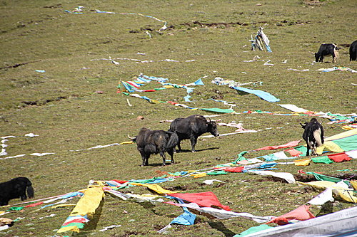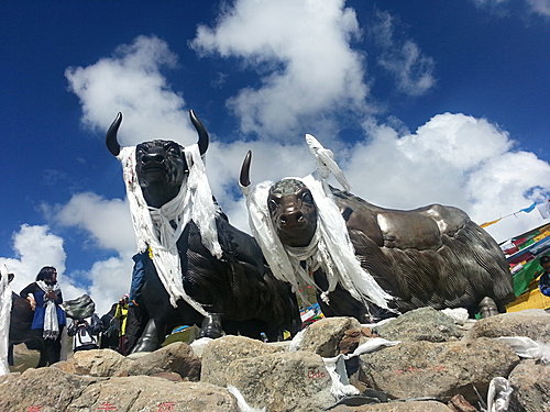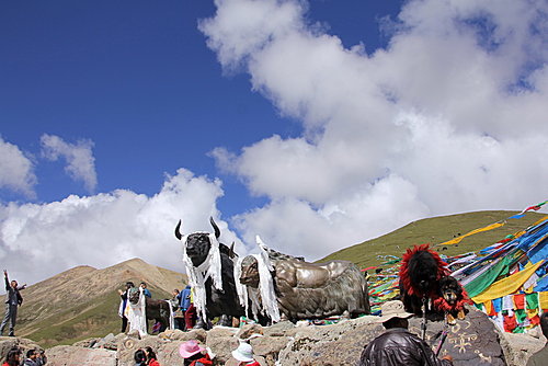 米拉山口因有其雄偉氣勢,是藏民心目中的神山。故山口上飄散著祭祀用的經幡和印有經文的紙條,而在山口的最高處,矗立著一對西藏犛牛石雕像。這意味著犛牛在藏民的心目中是何等重要了!