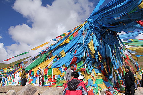 往林芝的路途中,車子約在11:30經過海拔5013米拉雪山口,這裡算是旅程的最高點。由於位於高原地帶,天空一片藍,雲更白,氧氣也更稀薄了!須然遊人的腳步會不其然慢下來,但無礙他們的興緻,各人都喜歡在標示石碑旁拍照留念。