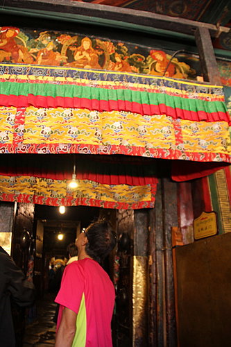 當導遊對著佛像或壁畫,解說各人的感人故事時(釋迦牟尼、千手觀音、六世班禪),我都不自覺地,在佛像前低頭敬禮。