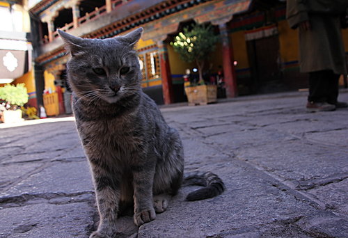 大昭寺門外的貓咪,溫馴悠閒地注視著遊客的往來。