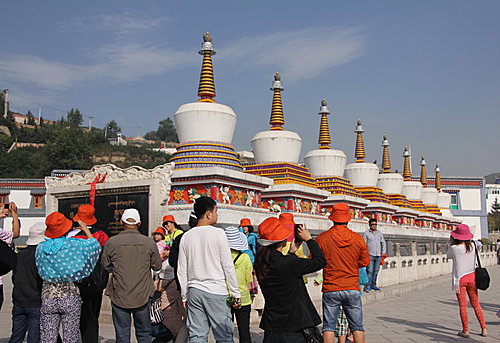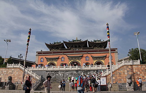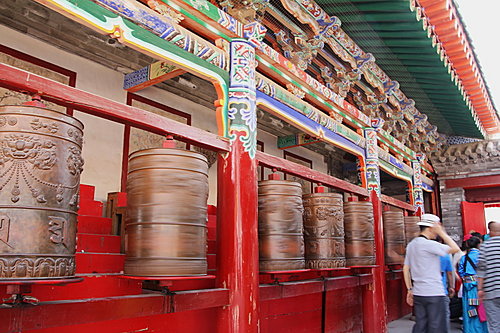 主要建築有八塔、大經堂、大金瓦殿、玨禪行宮、密宗學院……等。當行完整個寺院時,感覺腳都『軟』。因昨晚睡眠不足,精神狀態不理想;對於導遊的講解,都聽不進耳來,只想上午的行程,盡快完成。