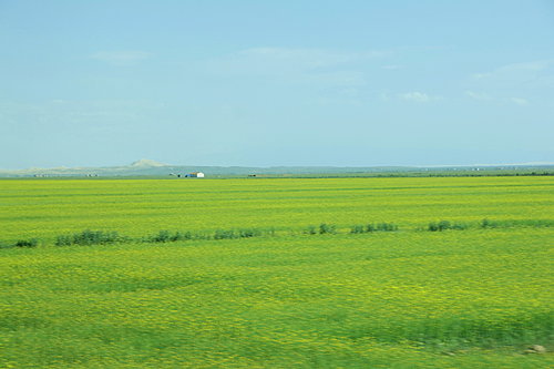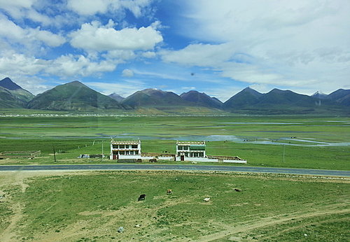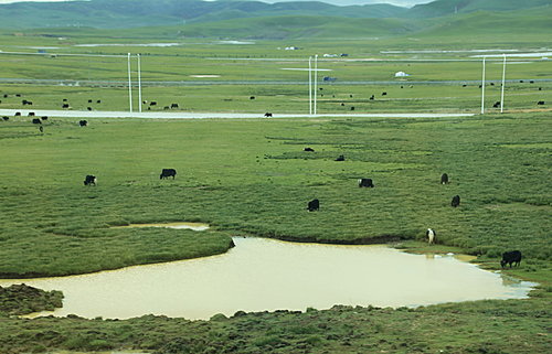 當火車經過寧靜的湖泊、荒涼的山野、雄渾的雪山和綠油油的油菜花田野時,天際一片晴空萬里。羚羊和野犛牛就在荒野覓食,樂在這塊險惡地域。