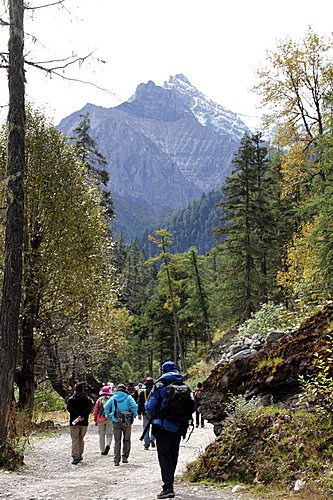 雅江往稻城路段──沿途翻越多個高山;如:剪子彎山(4659米)、卡子拉山(4718米)、兔兒山(4696米)和海子山自然保護區中的古冰帽。一連串的雄偉山勢,再遇上牛群在草地上覓食,正好是拍攝自然生態好題材。在黃昏時刻,車子沿路走往稻城途中,見秋天樺樹已經變得泛黃,又是拍攝水彩畫美景的時候了!