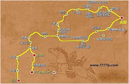 第一日至第六天的行程:香港─成都─瀘定—康定—丹巴─八美─塔公-新都橋-雅江—理塘-稻城─日瓦。
