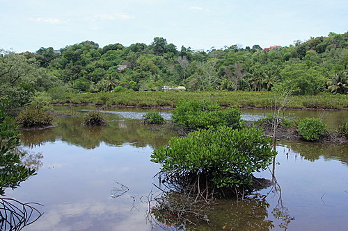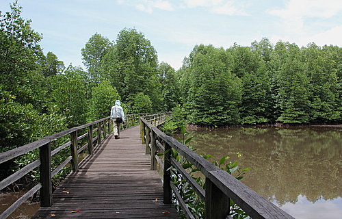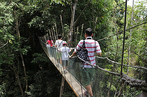 因外子不大喜歡水上活動,沒有到東姑阿都拉曼海島公園(Tunku Abdul Rahman Marine Park)。這個海島公園,是著名玩水上運動的樂園。其餘時間,我們就到亞庇市濕地中心(Kota Kinabalu Wetlands)和沙巴博物館(Sabah Museum)。 過往到沙巴,到只是經沙巴的亞庇,再轉機往斗湖;後乘車到詩巴單潛水。真正在亞庇遊覽,都只是首次。真要好好探索亞庇的自然生態。 我們想到近市區的景點,故選擇往亞庇市濕地中心。這個濕地中心不算大,一個早上已走完公園了。鳥類的種類不多亦數量少,在水池中或紅樹林中,我們見到鷺鳥和鴴鳥;林鳥也只是寥寥可數。怪不得遊客稀少,只見一個職員在服務台工作。 在神山公園的一天遊行程中,我們沒有機會到神山的頂峰處。只好在沿途中,為這高聳的山峰,拍個照像吧!並在公園入口附近,欣賞當地植物,並參觀神山展覽館。令我對神山公園的背景,多了點認識。 當天亦到另一參觀景點─波令溫泉(Poring Hot Springs),它是神山公園的一部份。建有露天溫泉、溫泉泳池和私家溫泉小木屋。