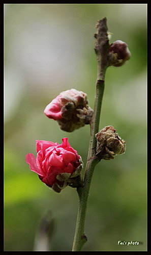 本著可趕及拍攝青衣公園的桃花,於是在(18.02.13)的早上,再走訪這個公園。當進入園內中心,眼前出現的桃花樹,其枝節己長出嫩芽了。 唯有在斜坡中,尋找一些花蕾和凋零的桃花,拍攝一些特寫算了!今年的春天,好像較往年早着陸。除了桃花已開到盡頭,在公園的不遠處,亦見木棉花俏俏地開花。 當在小山坡上,尋尋覓覓時,就發現一隻小鳥正撫弄羽毛。只見鳥兒羽毛濕透,可能在湖中剛沐浴完畢,飛到樹上快速轉動身軀,以使羽毛能快點乾吧!這難得景象,當然要立刻拍攝下來。